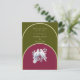 Arqueado de tres colores, invitación a la boda, en verde oliva, borgoña y amarillo. Guarda la tarjeta de fecha que coincida con la invitación del mismo diseño. Un par de palomas blancas que sostienen el conjunto de anillos bodas completa este diseño. También viene en otros conjuntos de colores.