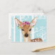 Postal Animal feliz con flores en el bosque azul-ciervo