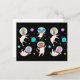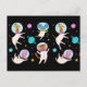 Una postal con una imagen de animales astronautas en cascos que circulan por el espacio. Girafa, ratón, gato y conejo. Tan adorable y divertido.