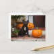 Esta linda foto de Getty Images muestra un cachorro de Bulldog francés sentado frente a las calabazas de Halloween.