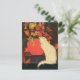Imagen de animales mascotas de ilustracion de época con un retrato de un hermoso gato blanco al lado de un jarrón naranja con un ramo de flores. Hermosos colores otoñales.