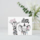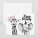 Un adorable dibujo monocromo de una jirafa y un elefante Tarjeta postal de felicitación de cumpleaños