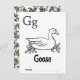 Enriquece tu baby shower con temática de libros con una actividad atractiva y personalizada utilizando nuestras Tarjetas Flash del Alfabeto del Bosque. Cada tarjeta muestra una letra del alfabeto, adornada con ilustraciones caprichosas que capturan la esencia del tema del Bosque. Como un toque encantador, tus invitados pueden colorear y firmar su tarjeta flash elegida, agregando su propio toque de creatividad. Estas tarjetas flash firmadas se convierten en preciados recuerdos para el bebé y en una herramienta de aprendizaje atractiva. Esta tarjeta presenta la letra G. Todas las letras están disponibles y toda la colección del alfabeto complementa perfectamente la línea de Baby Shower del Libro de Cuentos del Bosque, que presenta vibras acogedoras de otoño y adorables animales del bosque. Esta es una actividad de baby shower que todos amarán, dejando un recuerdo duradero para tu pequeño y maravillosos recuerdos para atesorar en los años venideros. ***Por favor, ordena en