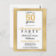 Celebra tu aniversario de bodas de oro con esta tarjeta postal de invitación a la fiesta de aniversario de bodas Salud por 50 años. Este diseño presenta un bonito fondo metálico dorado falso con un marco negro. Combina y combina con otros artículos de esta colección de aniversarios.