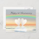 Tarjeta postal con mi obra de arte de dos corazones de papel flotando en el agua bajo un arcoíris. Texto personalizable dice "1 año".