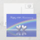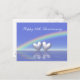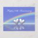 Tarjeta postal con mi obra de arte original de dos corazones de plata flotando en el agua bajo un arcoíris con texto personalizable que dice "Feliz aniversario de 25 años".