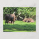 Toros con cuernos grandes llamados Ankole Cattle pastan en un pasto en el zoológico.