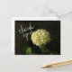 Evocativo mensaje de agradecimiento postal en suave marrón Rembrandt, marfil pálido y verde. Un mensaje artístico en la fotografía floral original. El texto de aspecto caligráfico se ve cepillado a mano en un verde pistacho claro.