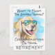 Tarjeta de felicitación por jubilación linda y moderna con un divertido perro de aguas dorado en una playa tropical. Diseño original creado a partir de una de nuestras acuarelas pintadas a mano.