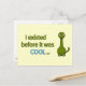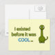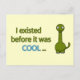 Un gracioso dinosaurio verde, con una mirada amistosa y un mensaje gracioso: Existí antes de que fuera genial. Este es un chiste que se refiere al hecho de que los dinosaurios vivían antes de la Edad de Hielo y también una gran manera de mostrarle a alguien lo genial y sabio que eres.