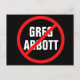 Greg Abbott con un círculo rojo y una X sobre su nombre. Distribuya por todas partes esta tarjeta del Anti Gobernador Abbott para que los texanos se levanten y voten contra él en las elecciones de mitad de mandato de Texas en 2022. Vamos a conseguir un demócrata en el cargo.