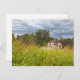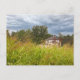 Dramática fotografía de una casa abandonada en Indiana con un campo de maíz en el frente y ominosas nubes en el fondo.