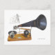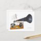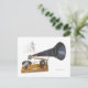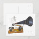 Esta postal muestra un dibujo de un antiguo gramófono victoriano.