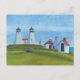 Gurnet Light, también conocida como Plymouth Light, es el encendedor de madera más antiguo de los Estados Unidos. Con un cielo azul nebuloso, suaves verdes de una colina cubierta de hierba y rojos vibrantes de los tejados de los edificios de apoyo, este cuadro muestra cómo el faro y sus balizas se veían antes de 1924, antes de que la torre noreste fuera derribada. Los faros vigilan la bahía de Plymouth en Plymouth, Massachusetts, pero actualmente sólo se puede acceder por tierra a través de la vecina ciudad de Duxbury.