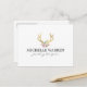 Coordina con las Antillas Bohemias de Oro con la plantilla de la tarjeta de visita Flores antes de las 12.01 horas. Un ilustracion de garzas de ciervos en oro metálico falso se combina con un ramo de flores para proporcionar una estética bohemia en esta plantilla de postal personalizada. Excelente para enviar agradecimientos a los clientes, por invitaciones, correspondencia personal y más. Este diseño forma parte de una serie de materiales de oficina de coordinación para ayudar a marcar su negocio. Arte y diseño originales © 1201AM CREATIVE / www.1201am.com