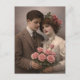 Postal Antique Romantic Couple Postcard with Roses