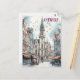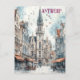 Esta postal de viaje, en estilo ilustracion acuático, muestra el perfil europeo de Amberes, Bélgica.