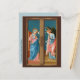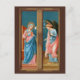 ℣. El Ángel del Señor le declaró a María, ℟. Y ella concibió el Espíritu Santo". Así, comienza la oración de tres días de Angelus a la Santísima Virgen María (BVM) que conmemora la encarnación en la Anunciación. + La Anunciación fue un tema inmensamente popular en el arte de la Edad Media y el Renacimiento. Como composición de dos personas, el sujeto se prestó a su uso en las hojas exteriores de los triptillos: el ángel de una hoja; Mary, por la otra. Un tríptico es una obra de arte —la mayoría de las veces una pintura de panel— que consiste de tres partes unidas de tal manera que se puede mostrar abierta o doblada cerrada. + Aquí, Filippo Lippi (1406-1469) ha pintado la Anunciación a temperatura sobre madera en rosados cálidos, salmones y rojos y en blues brillante y oscuro. Ambas figuras se encuentran en sus estrechos espacios respectivos, el Arcángel Gabriel inclinándose un poco ante la dulce y dulcemente destacada doncella María. A + Saints_Ainfinito le gusta el fondo marrón oscuro de esta imagen. Un fondo marrón oscuro da a los espectadores la impresión de que son espectadores observando la escena a través de una ventana. Pero, como de costumbre, hemos proporcionado una postal de la Paleta de Color para otros tonos sugeridos. + Fiesta de la Anunciación: 25 de marzo; Fiesta de San Gabriel el Arcángel: 29 de septiembre + Crédito de la imagen (M 038): Imagen antigua de la Anunciación de Filippo Lippi (1406-1469) de una postal de finales del siglo XIX y principios del siglo XX publicada originalmente por cromolitografía E. Sborgi, Florencia, Italia, de la colección privada de ephemera religiosa del diseñador. Los paneles originales de un poliptílico de origen desconocido se encuentran en la sala Filippo y Filippino de la Galería Uffizi en Florencia. La Anunciación forma las mitades superiores de las dos hojas mientras que SS. Anthony Abbott y John el Bautista aparecen en la parte inferior izquierda y en la parte inferior derecha, respectivamente.