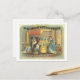 Esta postal es una reproducción de un litógrafo victoriano antiguo que muestra un anuncio de una de las primeras lavadoras domésticas y exprimidoras.