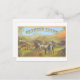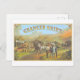 Esta postal es una reproducción de un litógrafo antiguo que muestra un anuncio de camisas para hombres Granger. La imagen muestra hombres y un vagón con caballos en una estación de tren rural con la frase "no monopolio" escrita en un letrero.