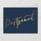Postal Anuncio de aplazamiento simple y elegante de azul