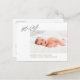 Dar la bienvenida a un nuevo bebé al mundo es una ocasión alegre. Este '¡Hola Mundo!' moderno y minimalista para recién nacidos. La tarjeta de anuncio incluye una dulce foto del miembro más nuevo de la familia junto con los datos de nacimiento del bebé o niña, es decir, nombre, fecha de nacimiento y peso. Un recuerdo ideal y apreciado para marcar el comienzo de la vida de un pequeño