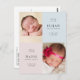 Comparte el nacimiento de tus gemelos con esta tarjeta postal de anuncio de nacimiento moderna y minimalista diseñada para anunciar gemelos niño y niña. La parte frontal de la tarjeta postal presenta una foto de cada bebé junto con sus nombres y estadísticas de nacimiento, sobre un suave fondo azul y rosa. En la parte trasera, agrega un mensaje personal, incluyendo la fecha en que nacieron los gemelos.