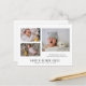 Una moderna tarjeta postal de nacimiento de un collage de fotos de bebés para enviársela a tus amigos y familia. Un collage de 3 adorables fotos con el nombre del bebé. Debe reemplazar esta foto por una foto de su propio recién nacido con una foto de orientación al paisaje que funcione mejor en el espacio. Añade tus nombres.