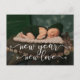 Anunciar el nacimiento de su bebé y desear a su familia y amigos un Feliz Año Nuevo con estas modernas postales de invitación fotográfica. La elegante y moderna tarjeta de anuncios de Año Nuevo presenta 2 fotos del bebé, la escritura tipográfica 'Año nuevo, amor nuevo' en letras de moda, estadísticas de nacimiento, nombre y tu mensaje en la parte trasera.