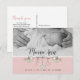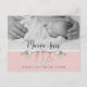 Este bonito diseño en rosa presenta pájaros bebé llevando corazones y flores para celebrar el nacimiento de tu bebé niña. Esta foto en blanco y negro tiene un filtro que convierte tu foto en color en blanco y negro. Envía esta tarjeta postal de agradecimiento y anuncio de nacimiento de bebé, tus amigos y familiares la amarán. Para encontrar el diseño coincidente, escribe "pcl18" en la barra de búsqueda. Envíame un correo electrónico a JMR_Designs@yahoo.com si necesitas ayuda o tienes alguna solicitud especial.