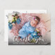 Anuncie el nacimiento de su bebé y gracias a su familia y amigos por sus regalos y deseos con este lindo anuncio de nacimiento gracias a las postales. Diseño que incluye 1 foto del bebé, escritura de agradecimiento blanca en forma de letra escrita a mano y nombre del bebé y fecha de nacimiento en el frente. Añade más detalles, como estadísticas de nacimiento, etc en la parte posterior de la postal. Por favor, contáctame si necesitas ayuda con este diseño.