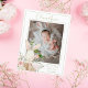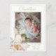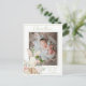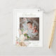 Dulce conejo acuarela con acento de canasta tu foto favorita para esta adorable invitación de bebé. Tipografía verde y escritura. Flores suaves en tonos pastel por todos lados. Dulce mensaje de personalizable al reverso de este lindo anuncio de natalidad de bebé.