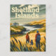 Una pintoresca representación vintage de las Islas Shetland, Escocia, mostrando sus escarpados paisajes costeros, ruinas antiguas y un vibrante patrimonio cultural. El diseño presenta los acantilados espectaculares de las islas, sus amplios paisajes marinos y sus tradicionales casas de croft, todo ello en un estilo nostálgico. Esta obra de arte captura el encanto eterno y la belleza natural de las islas Shetland, invitando a los espectadores a explorar su remoto encanto y su rica historia marítima.