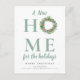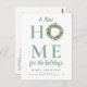 Anuncia tu nuevo hogar de vacaciones a familiares y amigos con este diseño moderno de corona de navidad.