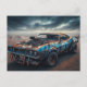 Blue Classic 1969 Chevy Camaro con soplador y manchas de óxido en el desierto durante el apocalipsis.
