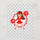 Cortada morena marrón animadora de pelo rojo con un fondo de acento gris.