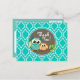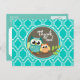 Postal Aqua Turquoise Retro Owls Baby Shower