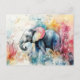 Postal Aquarell Illustration eines Elefanten mit Blumen