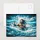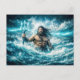 Postal Aquarius Zodiac with Trident Warrior in Stormy Oce