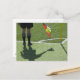 Postal Árbitro de fútbol sostiene bandera.