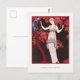 Una postal con el ilustracion francés de moda, El árbol de la ciencia (L'abre de Science) (1914) de George Barbier (1882-1932). Imagen mejorada digitalmente de la Gazette du Bon Ton. Una mujer vestida de rosa pálido por la noche con un árbol con un pájaro azul en una extremidad.