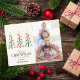 Celebra la festividad de los Navidades con esta divertida postal de personalizable. El fondo de color crema se acentúa con árboles de bonito verde de Navidad con ornamentos de caza de chorro rojo y texto de personalizable en la parte inferior para agregar tu nombre de familia. A la derecha, añade tu foto familiar favorita, creando un perfecto equilibrio de fiesta. Voltear la tarjeta para introducir nombre personalizado, dirección y saludo especial de vacaciones, o usar el nuestro! Esta postal marca la pauta para unas vacaciones cálidas y memorables. Explore nuestra colección para coordinar productos modernos, elegantes y atemporales. El diseño es derechos de autor en diseños de estilo LLC.