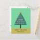 Aquí hay un divertido árbol de Navidad con patrones con luces de colores encendidas. El personalizable es completo: el nombre del mensaje y el color de fondo.