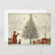 Postal Árbol de Navidad de aldea y gato