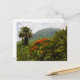 Estas hermosas postales con una exuberante escena caribeña son perfectas para cualquier ocasión. La foto muestra un árbol de palmera, un árbol flamboyante y la cima de una montaña volcánica rodeada de nubes. La foto fue tomada en la isla caribeña de Nevis por el fotógrafo C. Del Toro de Studio Elysée LLC. Visita imágenes tropicales para tarjetas temáticas caribeñas, invitaciones y regalos. www.zazzle.com/tropicalimages*