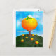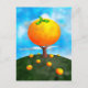 Ilustracion conceptual ambientalmente amigable de un árbol naranja que cultiva un naranja gigante con muchos naranjas pequeños esparcidos por el suelo. Imagen disponible en varios regalos y productos.
