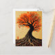 Árbol surrealista con hojas de naranja y raíces torcidas que genera IA