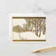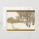 Diseño Art Déco japonés de un terreno cubierto de nieve y árboles desnudos.