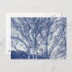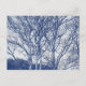 Foto de árboles iluminados por el sol en invierno con efecto cianotipio.