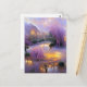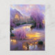 Postal Árboles frutales rosas al atardecer junto al estan